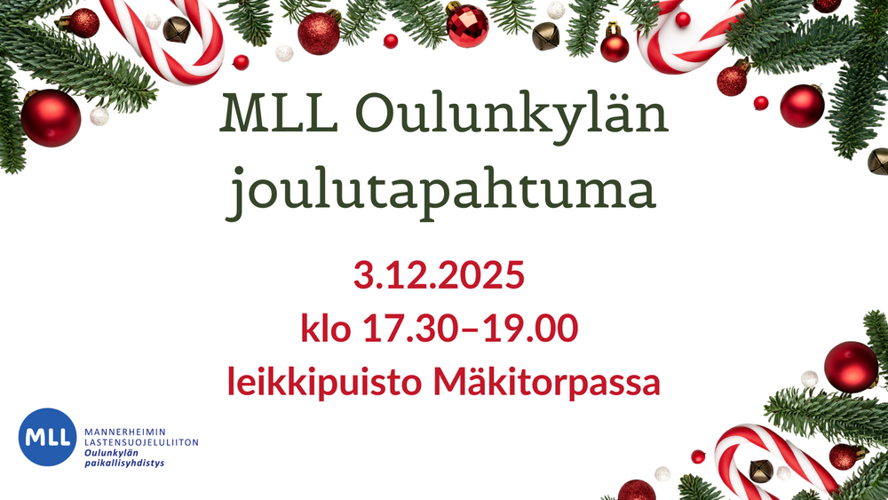 MLL Oulunkylän perinteinen koko perheen joulutapahtuma järjestetään 3.12.2025 klo 17.30–19.00 leikkipuisto Mäkitorpassa. Tule mukaan aloittamaan joulunodotus yhdessä – lämpimästi tervetuloa!…